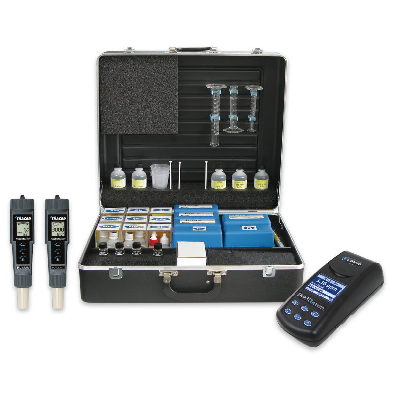 El Total Chlorine TRACER PockeTester™ está diseñado para medir de 0 a 9,99 ppm con una precisión del 10% y una resolución de 0,01 ppm. El usuario simplemente colocaría una tableta TRACER de Cloro Total (código 7044A) en un vaso de muestra para medir esta prueba.