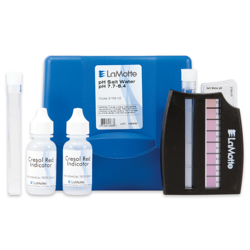 Este kit puede utilizarse para medir los niveles de pH en agua salada utilizando el comparador Octa-Slide 2. El rango y la sensibilidad son 7,7, 7,8, 7,9, 8,0, 8,1, 8,2, 8,3, 8,4 pH.