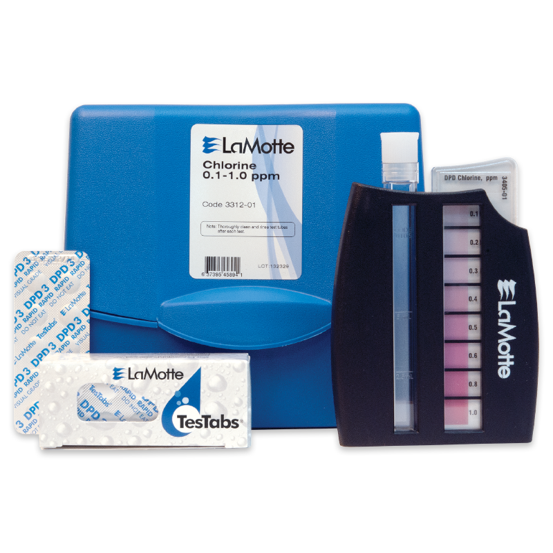 Este kit de prueba de cloro mide el cloro en el agua potable utilizando tabletas de DPD de cloro y el comparador Octa-Slide 2. El rango/sensibilidad es de 0,1 – 1,0 ppm Cl.