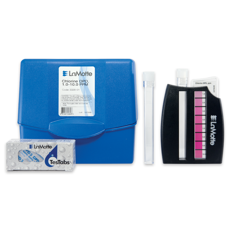 Este kit de prueba de cloro mide para niveles altos de cloro utilizando tabletas DPD de cloro y el comparador Octa-Slide 2. El rango/sensibilidad es de 1,0-10,0 ppm Cl.