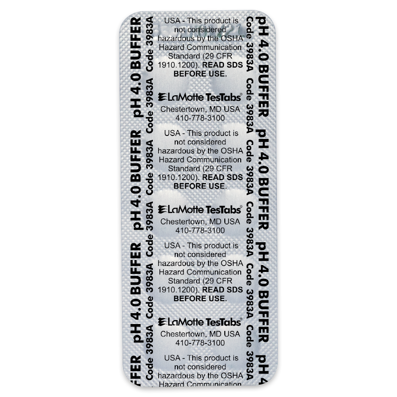 Añade una pastilla a 20 mL de agua desionizada para producir amortiguadores. Disponible en packs de 50 y 100 tabletas. En tiras de papel de aluminio de 10 tabletas cada una.