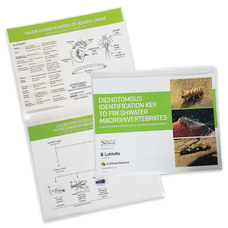 Clave dicotómica encadenada en espiral para la identificación de macroinvertebrados acuáticos a nivel de Orden y algunas Familias. Codificado por colores según el nivel de tolerancia a la contaminación. Incluye glosario, ilustraciones de partes del cuerpo y referencia de tamaño. Resistente al agua para uso en campo o en interiores. Mejora del kit de ecología de arroyos para paquetes de hojas. Inglés y español. Un par de seis.