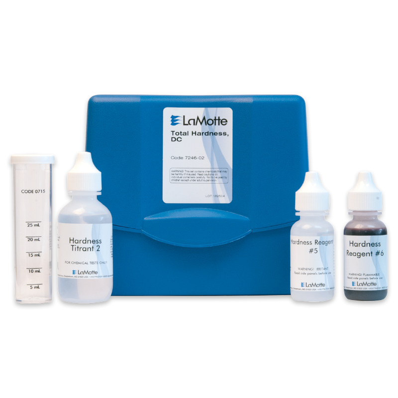 Este kit demuestra la dureza total usando el método de la botella cuentagotas. Todos los resultados son como CaCO3. El rango/sensibilidad es 1 gota = 2, 5 o 10 ppmCaCO 3.