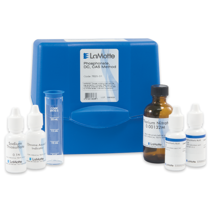 Este kit detecta fosfonato usando el método de recuento de gotas. Rango: 1 gota = 1,25 ppm HEDP, 1 gota = 1,4 ppm PBTC.