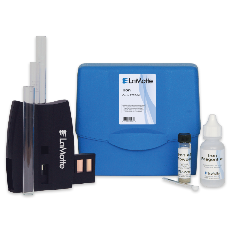 Este kit demuestra la baja tensión de hierro en agua usando reactivos de hierro y el comparador LRC. El rango/sensibilidad es 0,05, 0,10, 0,20, 0,30, 0,40, 0,60, 0,80, 1,0 ppm de Fe.